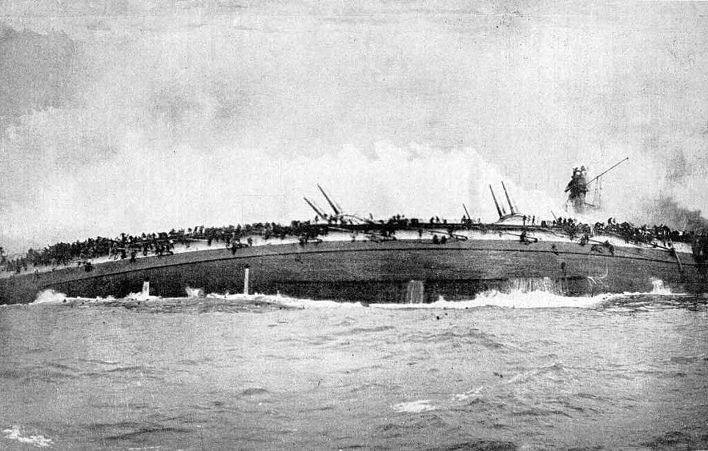 The immense barrage on HMS Lion displaced some armor plates, causing flooding in the boiler feed tanks. As a result, Lion’s engines failed around 11:00 a.m. Beatty signaled for the rest of his force to continue the pursuit, but a miscommunication led the battlecruisers to halt their advance instead. With the pursuit abandoned, all fire was concentrated on the straggling Blücher, which had been left to its fate by the retreating Hipper. After being struck by two torpedoes, Blücher capsized and sank. Its final moments became the subject of one of the most haunting and memorable photographs of the First World War.