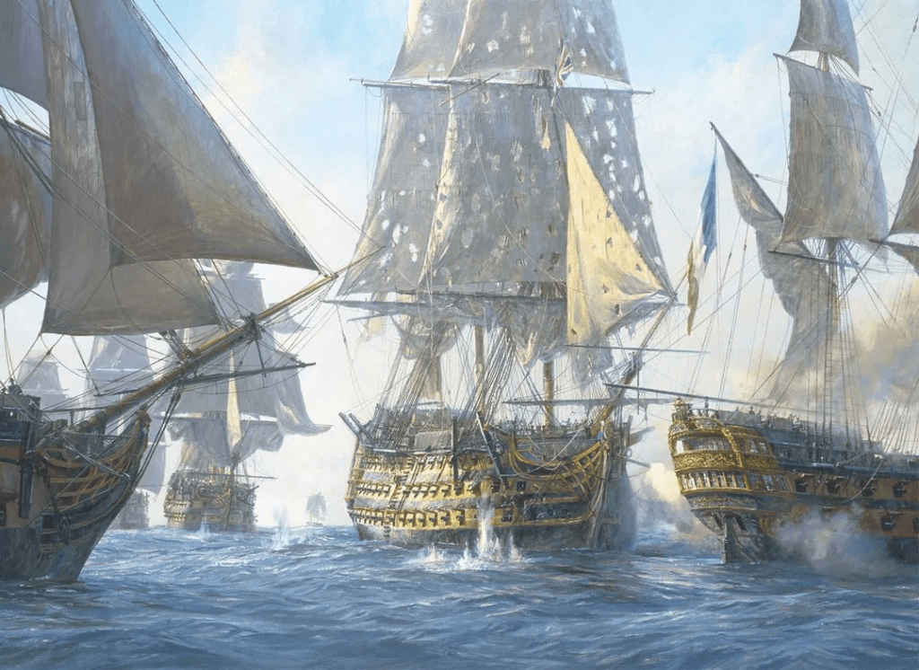 Victory struck hard, firing devastating broadsides into the stern of Villeneuve’s flagship Bucentaure. With cannonballs and grapeshot, HMS Victory disabled many of Bucentaure’s guns, decimated her crew and crippled the ship in minutes. The Victory, however, then came under heavy fire of the 74-gun Redoutable and the 130-gun Santísima Trinidad.