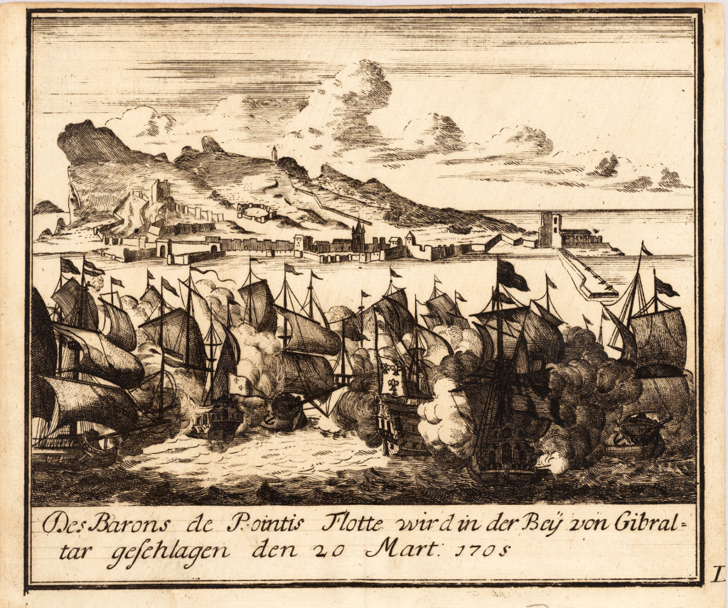 On 4 October, an escorting squadron of 20 warships, led by Admiral Jean Pointis, arrived off the besieged stronghold with transports carrying about 4,000 French soldiers. Part of Pointis’ force remained in the Strait of Gibraltar to block any Allied attempt to reinforce or resupply the besieged fortress. ‘The Rock’ was now effectively surrounded. More trenches and batteries were set up, and at the end of October, a fierce bombardment of Prince George’s beleaguered forces began.