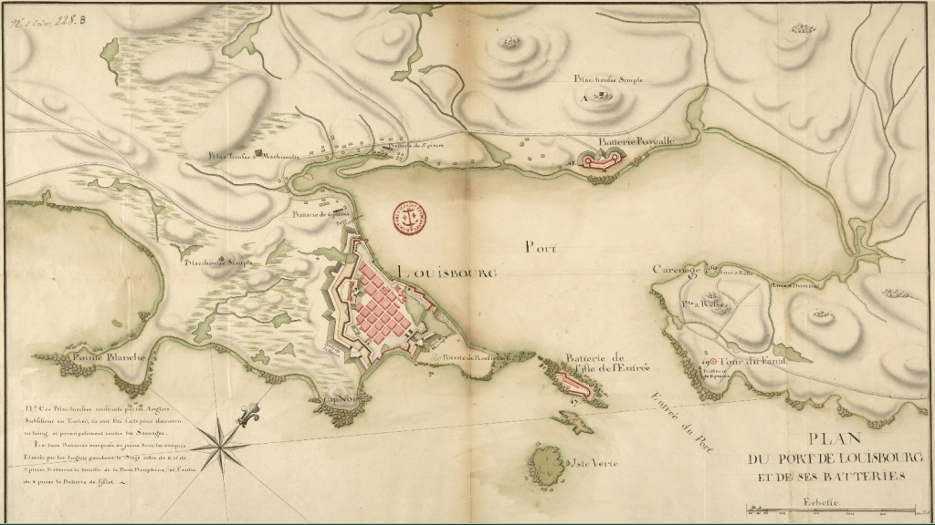 Situated at the eastern end of Cape Breton Island—also known as Île Royale—this settlement controlled access to the St. Lawrence River. It was so well fortified that it was called the “Dunkirk of America.” Simultaneously, its deep natural harbour provided perfect shelter for a squadron capable of wreaking havoc on British shipping in the region.